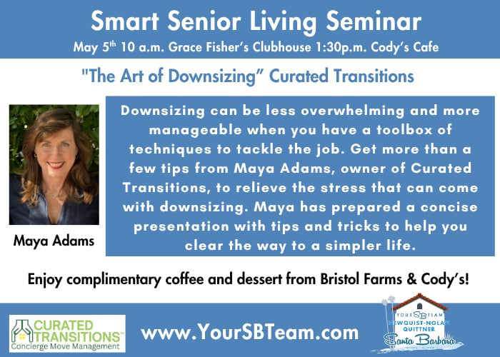 Downsizing can be less overwhelming and more manageable when you have a toolbox of techniques to tackle the job. Get more than a few tips from Maya Adams, owner of Curated Transitions, to relieve the stress that can come with downsizing. Maya has prepared a concise presentation with tips and tricks to help you clear the way to a simpler life.