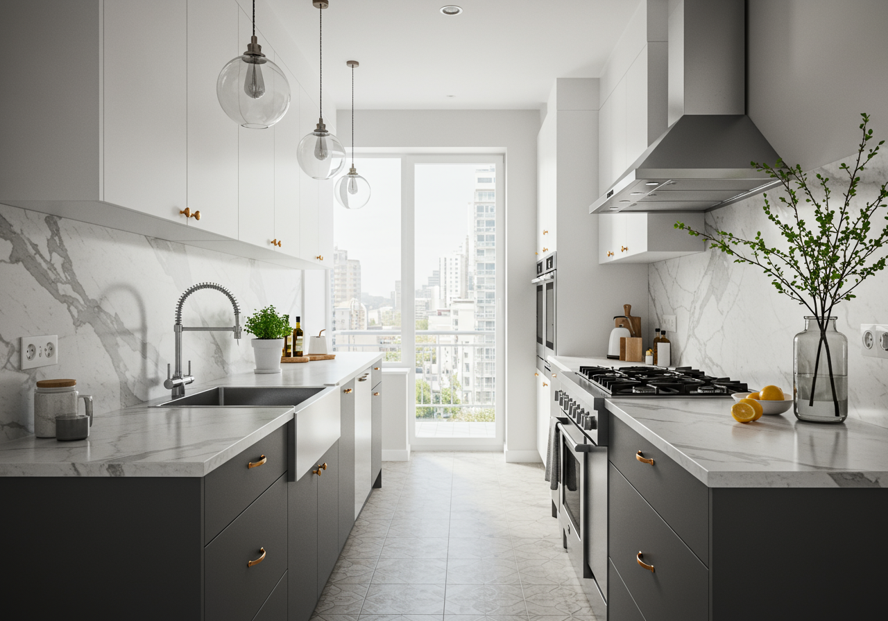 Handleless drawers and cabinet doors also lend a futuristic look, giving a kitchen a sleek feel with clean lines.