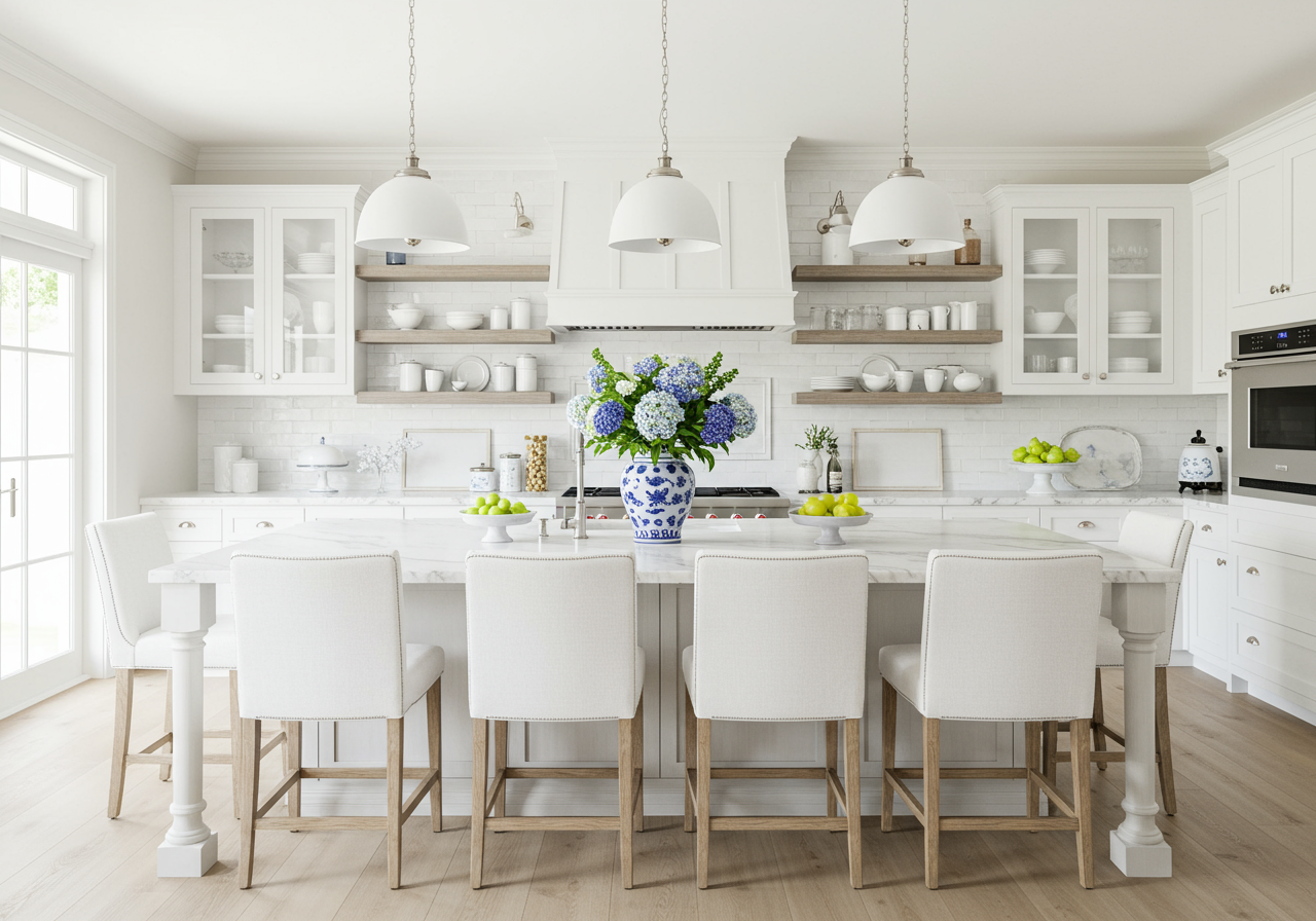 “Larger kitchen islands are here to stay,” says Ariana Lovato, owner and principal designer of Honeycomb Home Design in Shell Beach, CA. “People want to have as many workspaces as possible, with the kids now doing virtual school.”