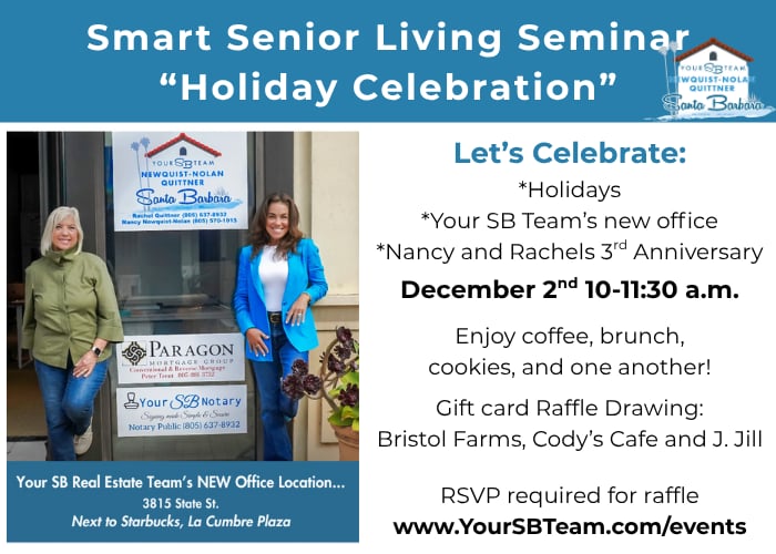 Senior Living Consultants will present Senior Living Options in our Santa Barbara community, as well as a breakdown of costs and tips on how to find what you are looking for. They help Active Seniors find Independent Living apartments and adult children find Assisted Living or Memory Care homes for your aging parents. For families keeping their loved ones at home, they also provide elder care consultations. Bring your questions, We are Here to Help!